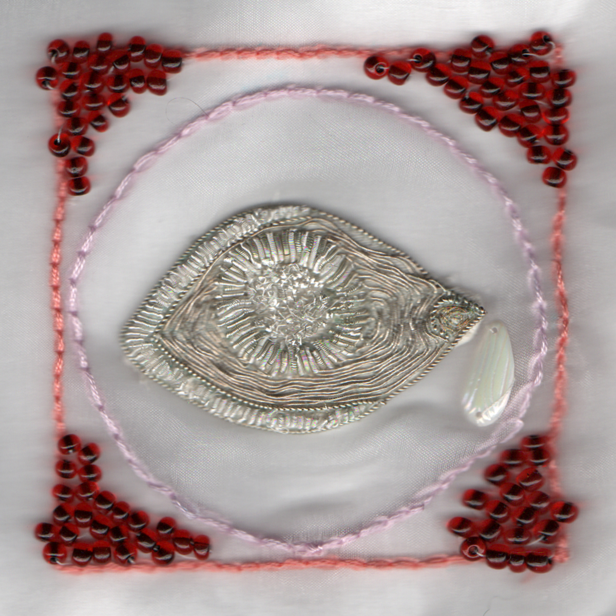 tambour embroidery sample, 3.5” x 3.5”. 2020.
